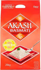 Rice Basmati Akash 20 kg: Rice Basmati Akash is a premium quality long-grain rice that is widely recognized for its unique aroma and delicate texture. Grown in the foothills of the Himalayas, this rice variety is characterized by its slender and fluffy grains that remain separate and non-sticky even after cooking.